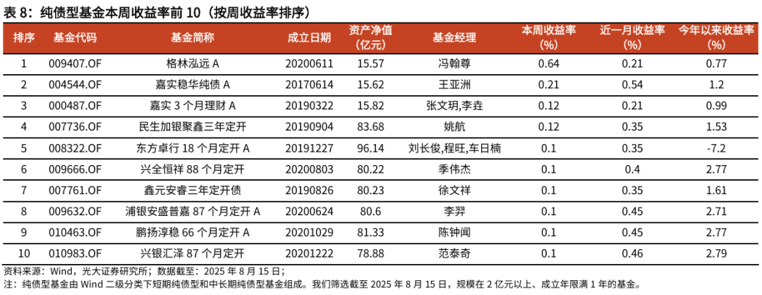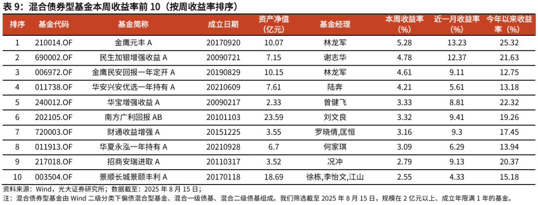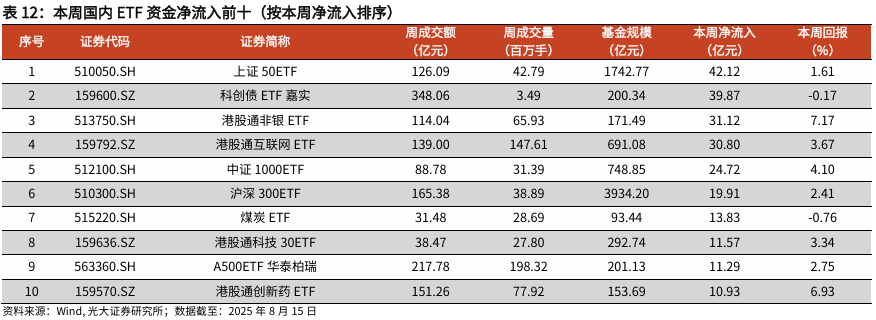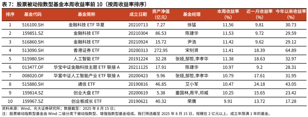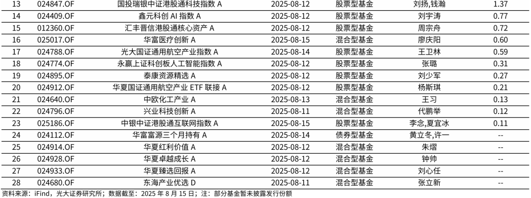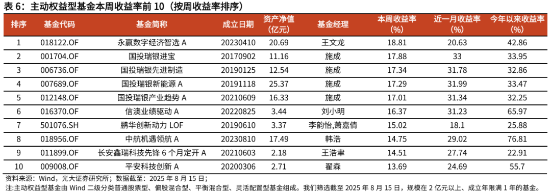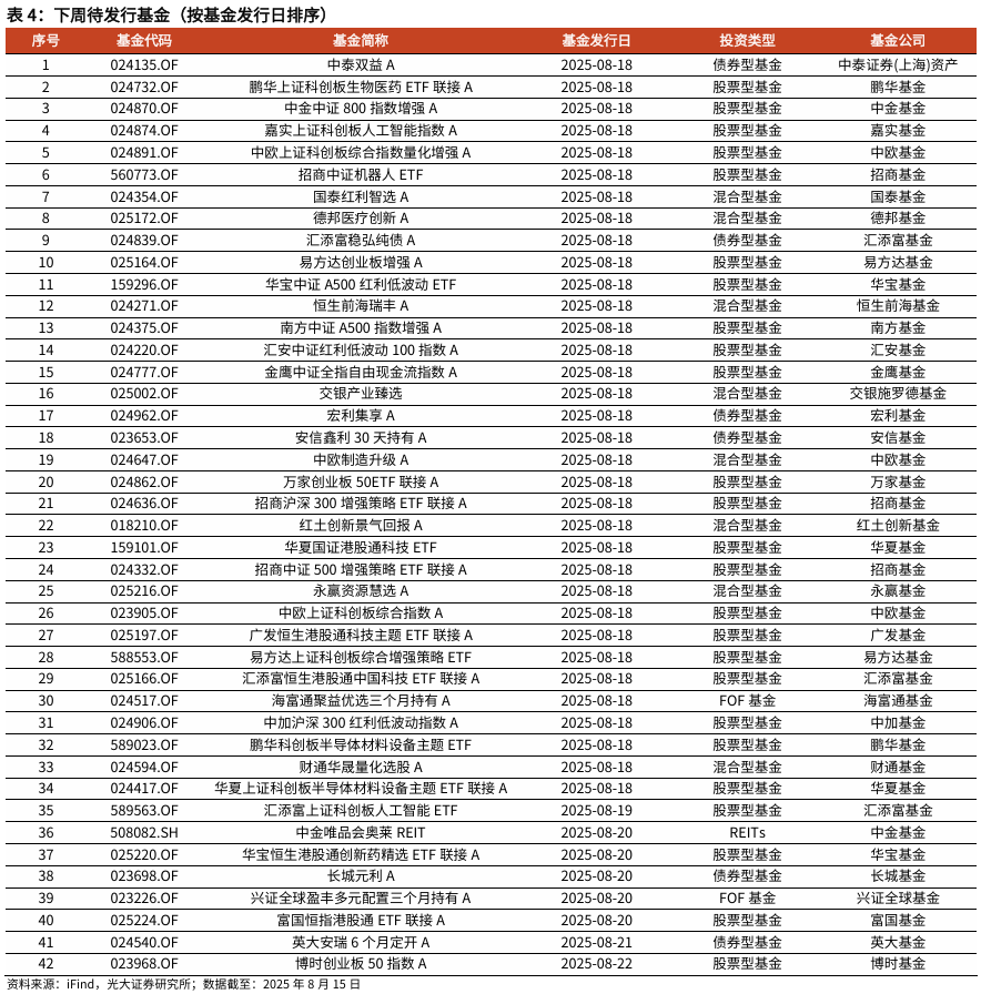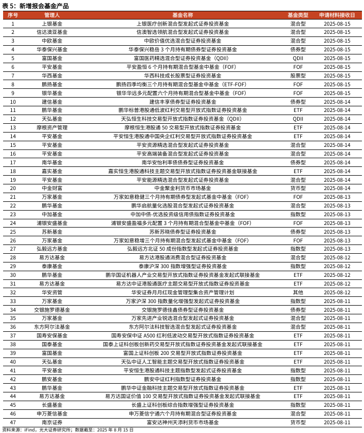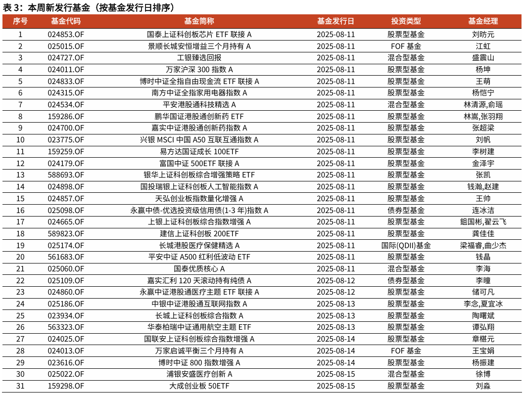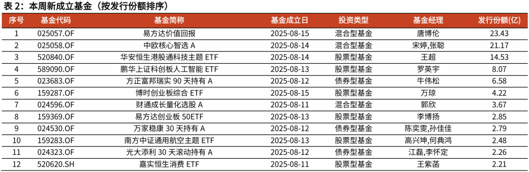 详见2025年8月18日发布的《权益、债券型基金表现分化,各类行业主题基金普遍上涨——基金市场与ESG产品周报20250818》